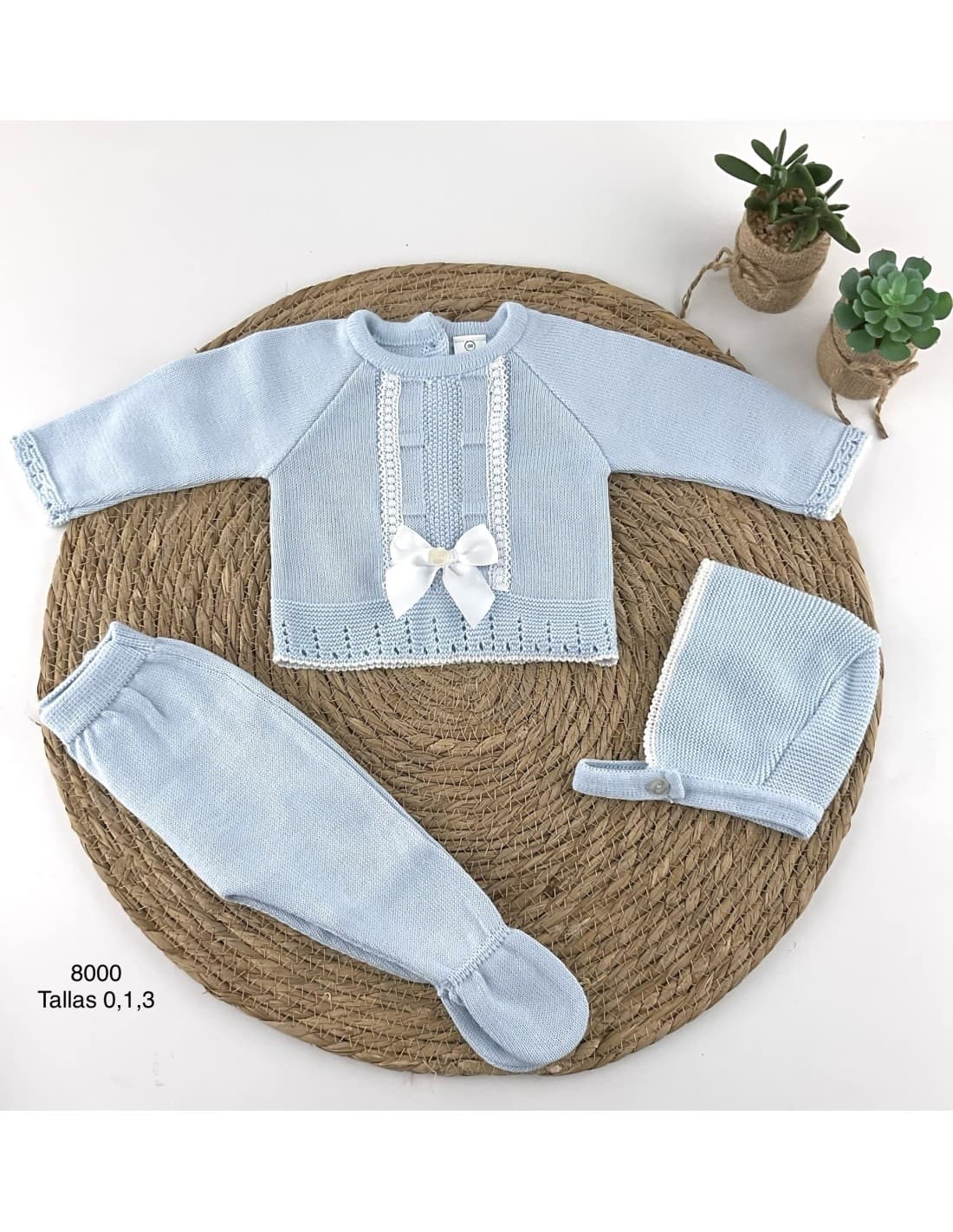 Conjunto de lana azul para bebé Pelottas Kids C9005 tres piezas suaves y acogedoras