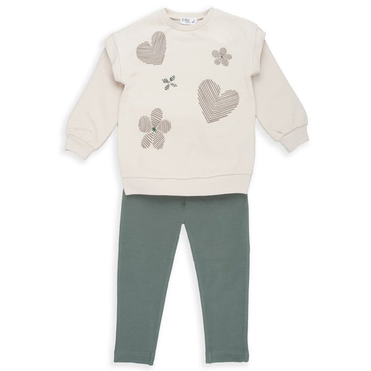 Conjunto bebé niña Babybol 2 piezas – Sudadera beige con flores y leggings verdes (Ref. 522151064)