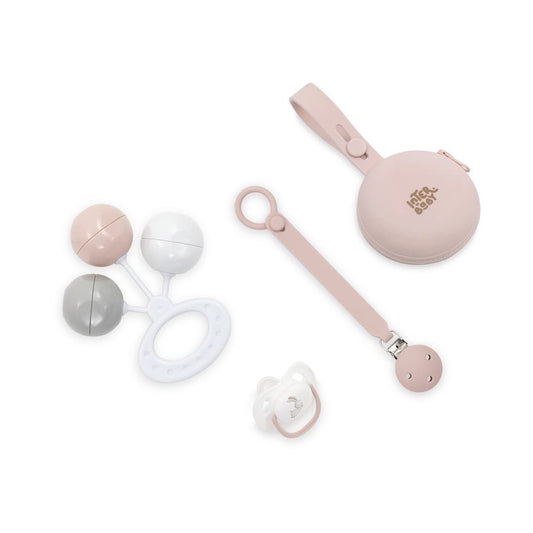Todos los productos están fabricados con materiales seguros y suaves, aptos para el uso diario. Los chupetes ayudan a consolar, los mordedores alivian las molestias de la dentición y los sonajeros despiertan sus sentidos con texturas y sonidos suaves.