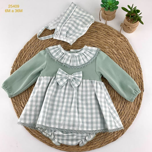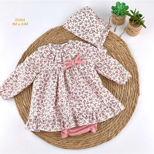 Conjunto bebé Baby Ferr 25409 Vestido, cubrepañal y capota