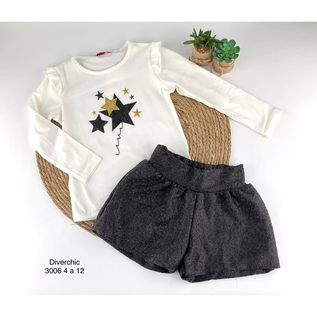 Ensemble fille Diverchic 522103006 Brilli : t-shirt blanc et short en laine gris à paillettes
