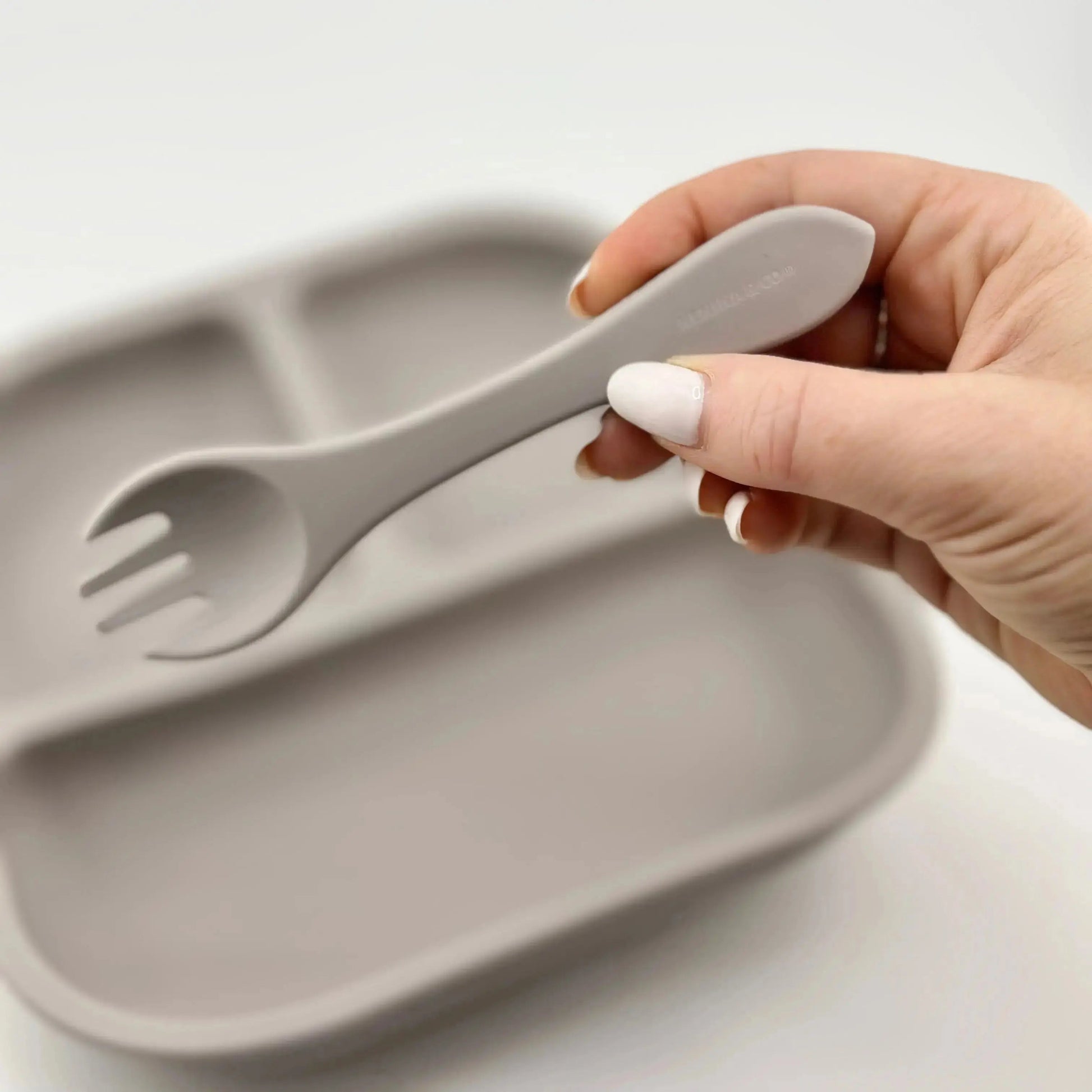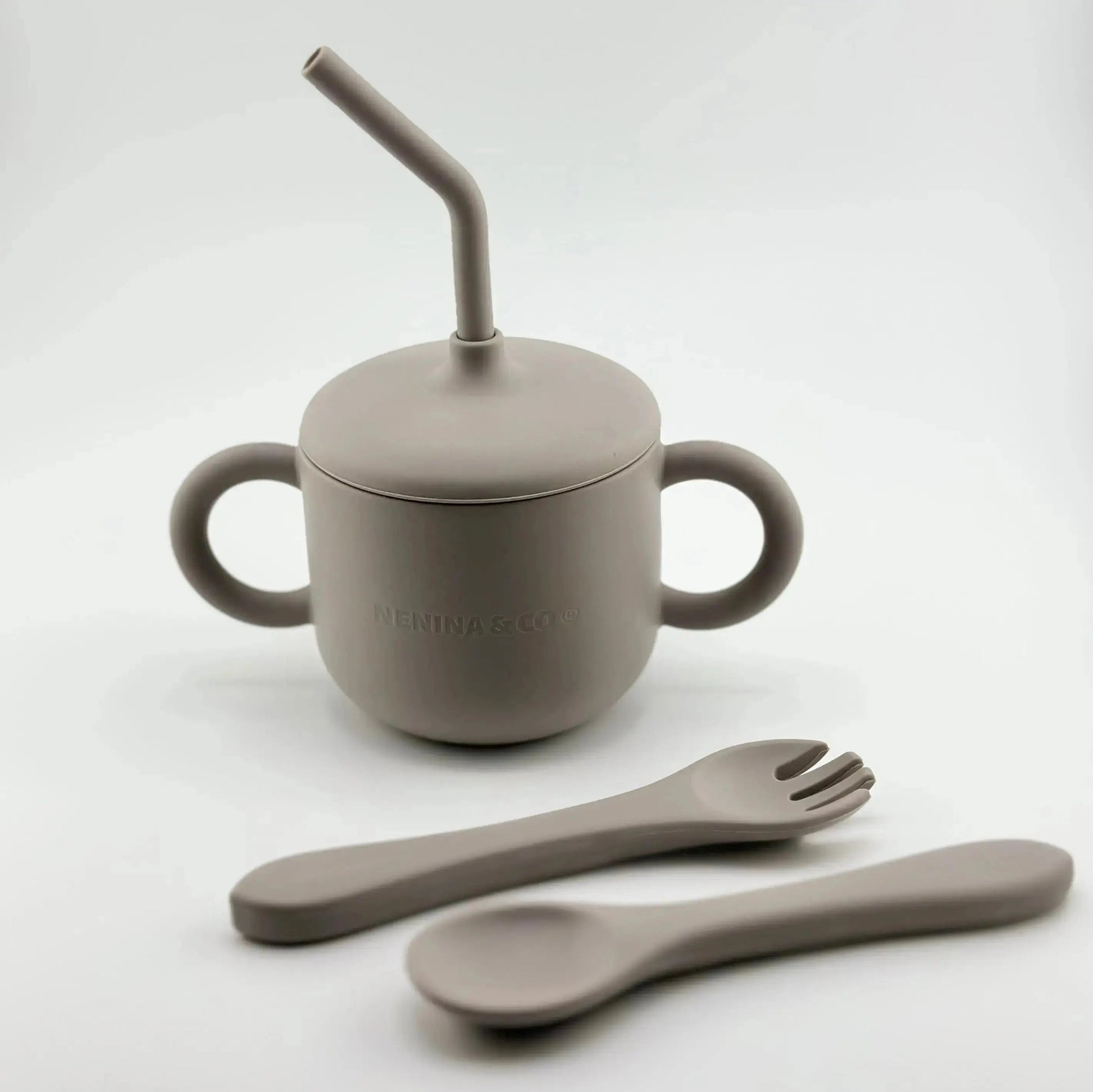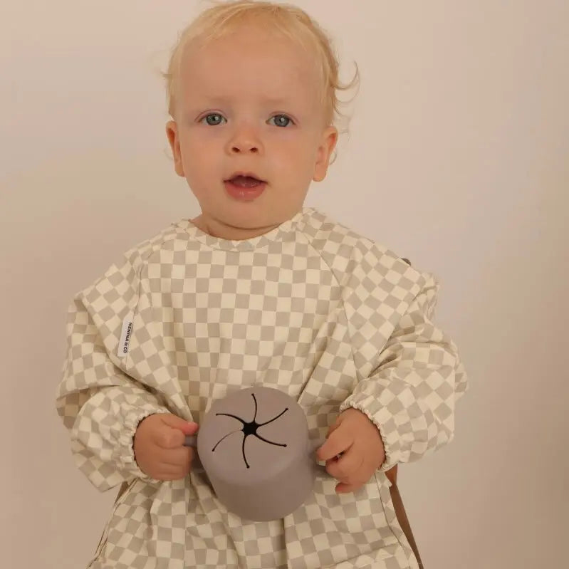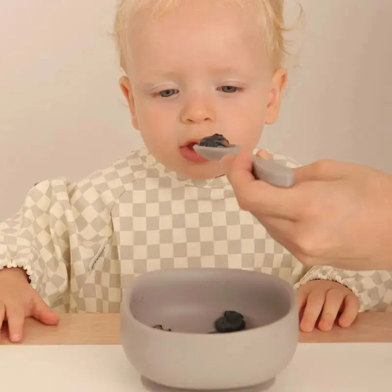 Kit Deluxe Babero + Vajilla BLW Gris 9 Piezas de Silicona orgánica con ventosas Nenina & Co
