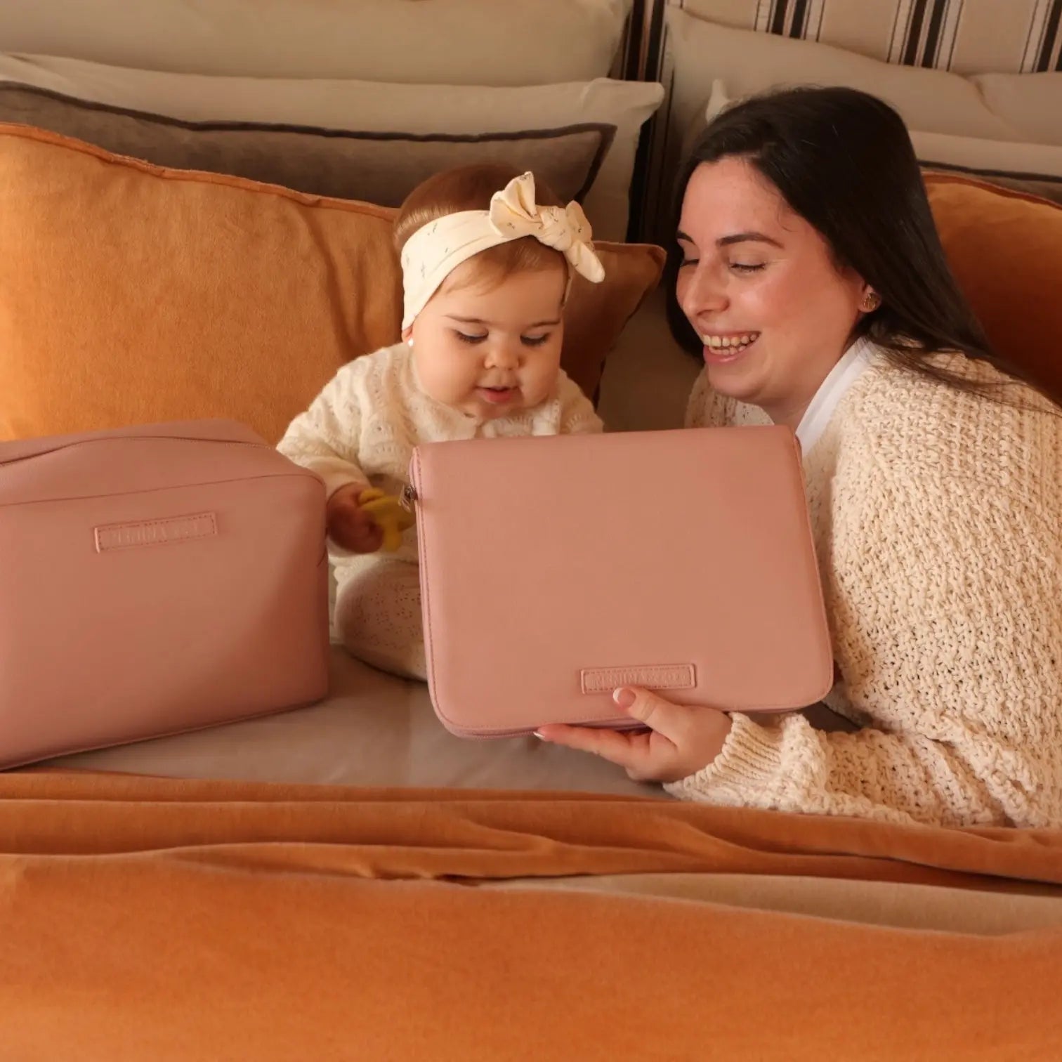 Pack Nacimiento Bebé: Portadocumentos + Neceser de Eco Piel MIREM Rosa pálido | Nenina & Co