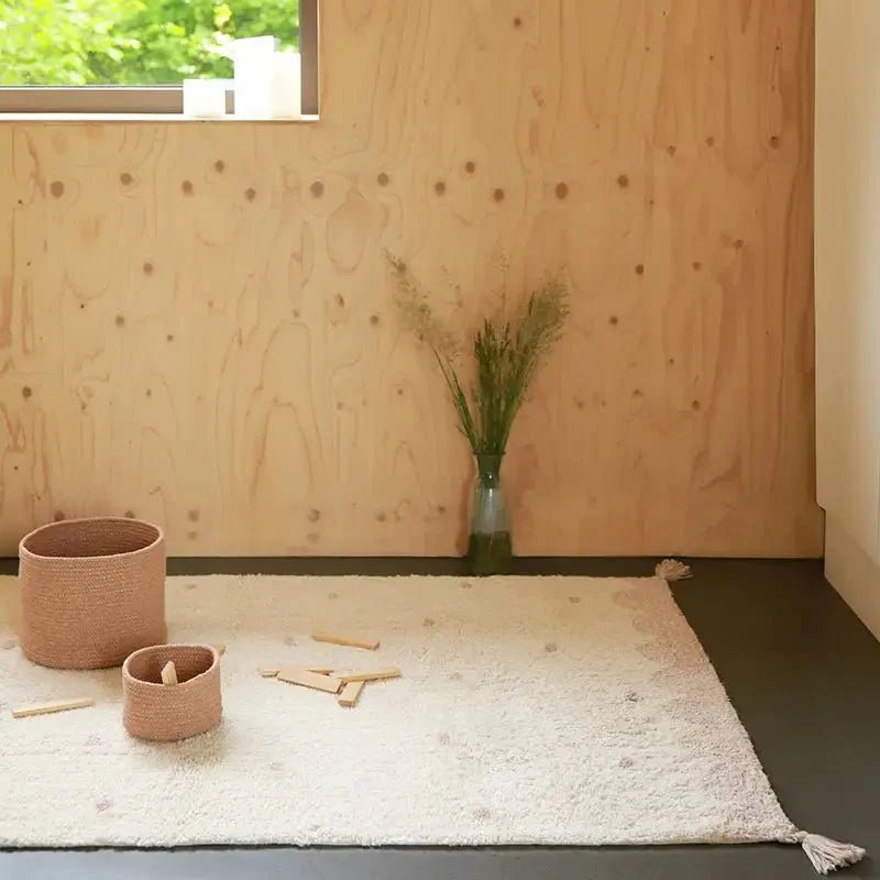 Alfombra de algodón lavable para dormitorio infantil con lunares MINNA 100x150