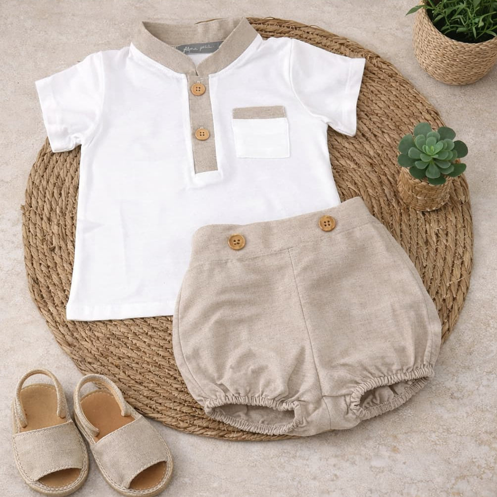 Conjunto bebé niño lino camiseta y pantalón corto – Alma Petit 622005008