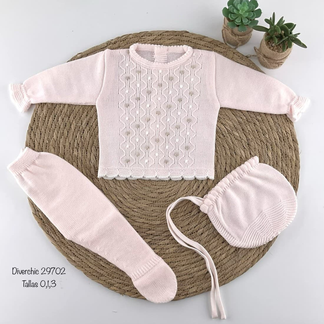 Conjunto bebé primera puesta de lana 29702 Diverchic Rosa topos