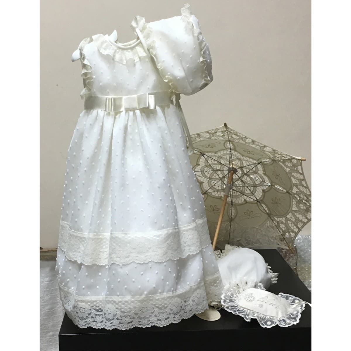 Faldón de Bautizo para Bebé en Plumeti con Puntilla – Largo Medio (6 meses) 23127