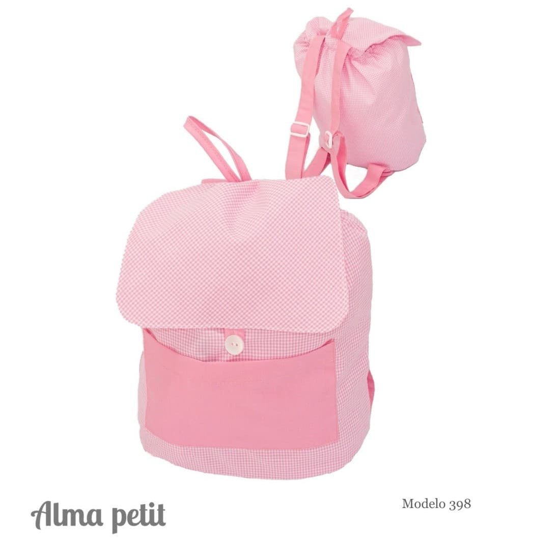 Mochila Infantil Vichy Rosa con Bolsillo – Alma Petit Colegiales - Ref. 229800398