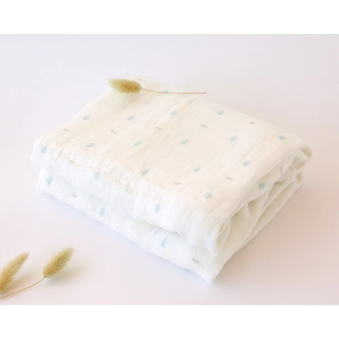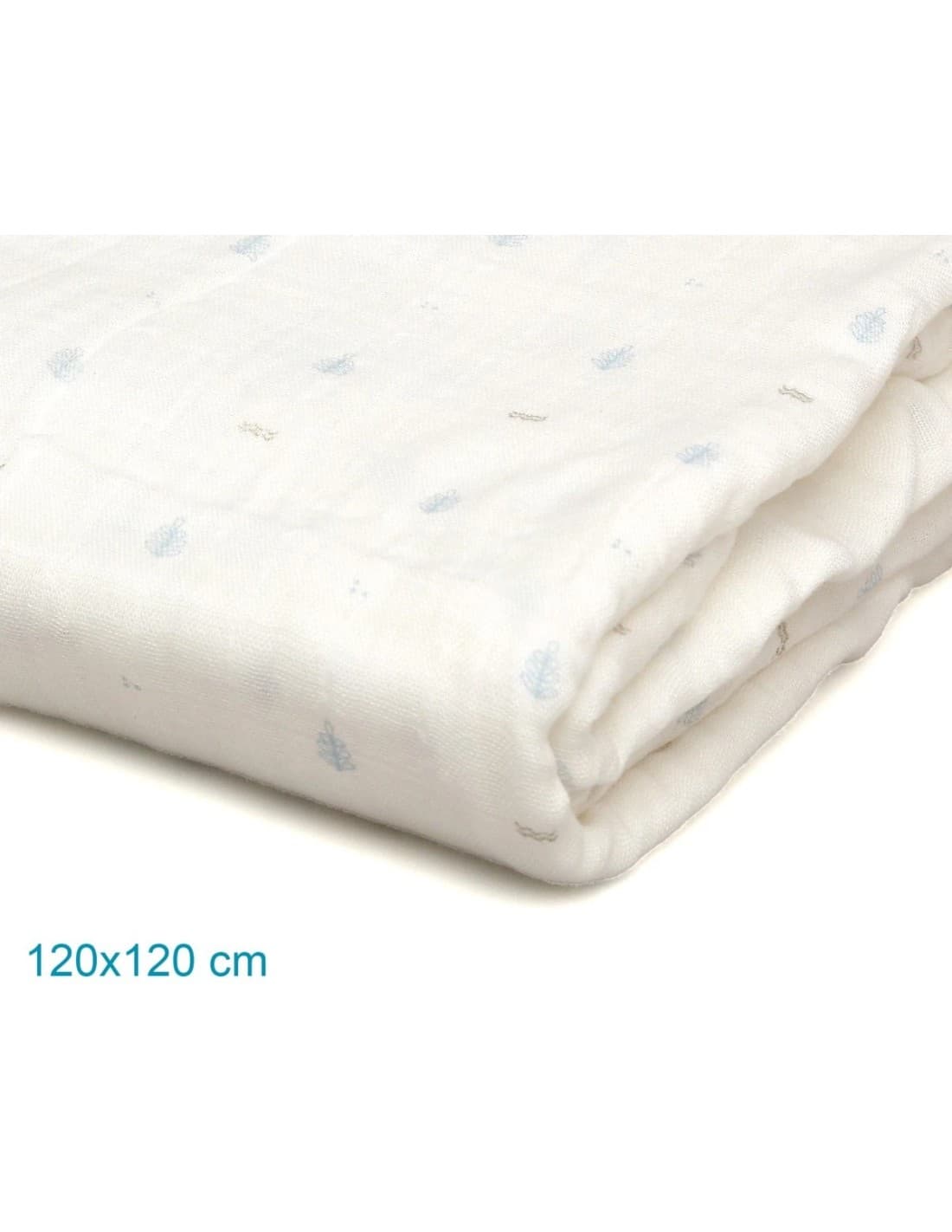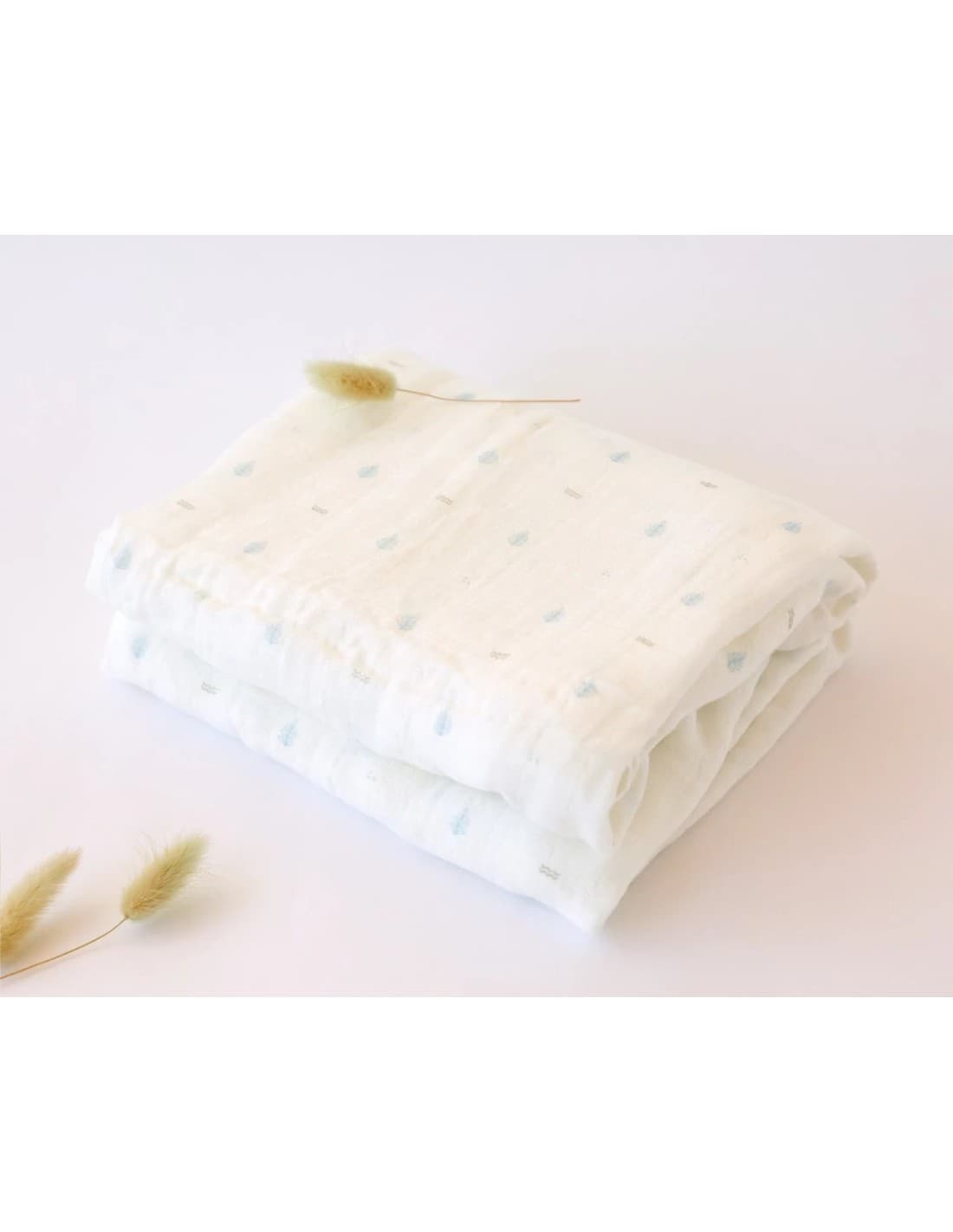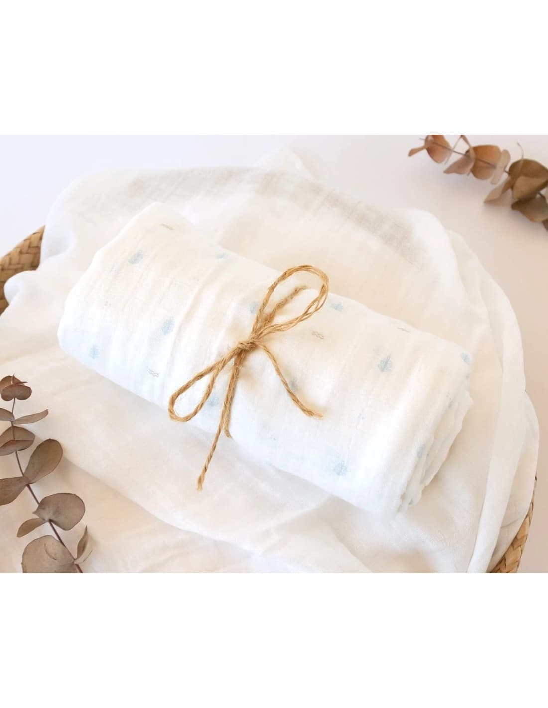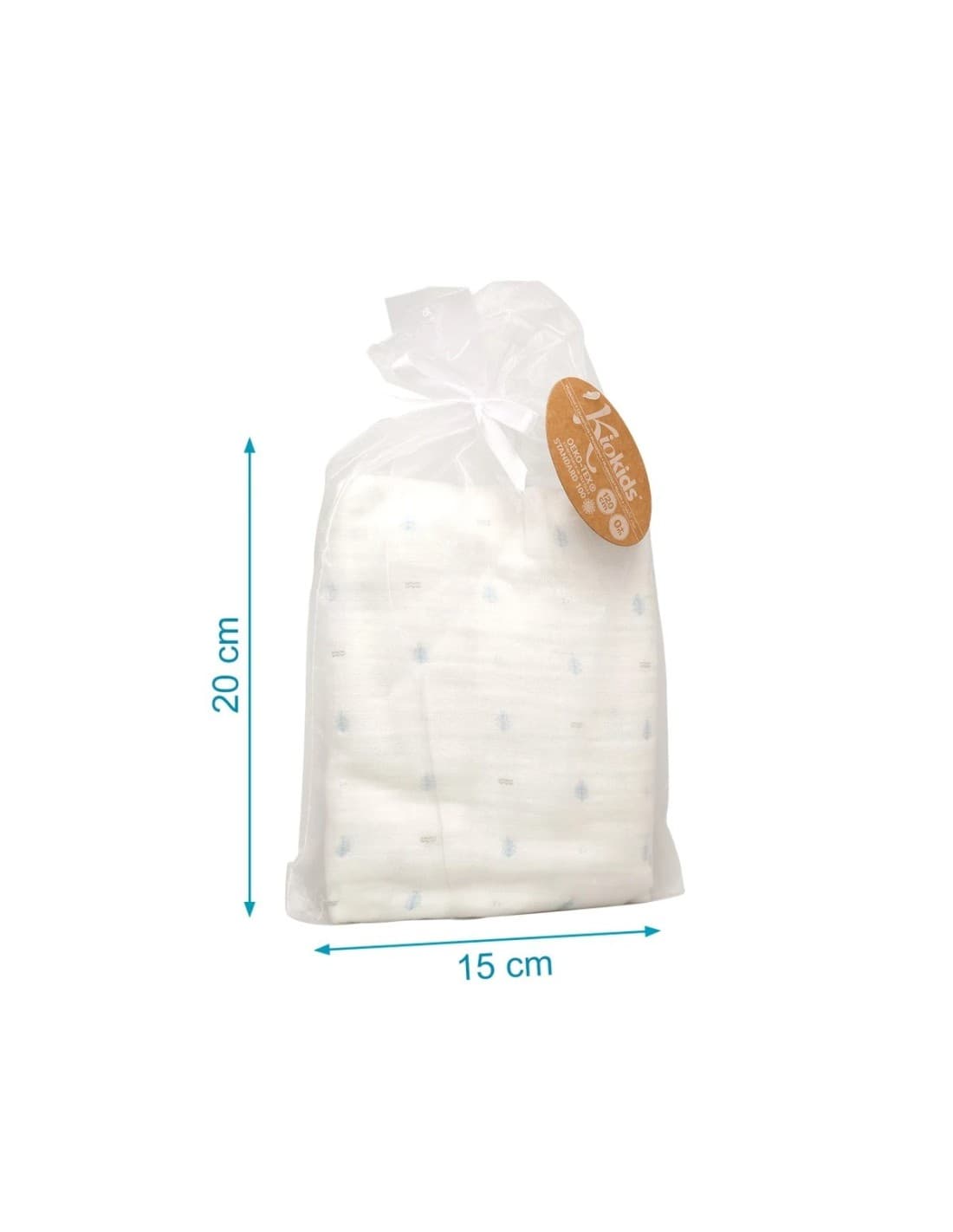 Muselina bebé 120x120 cm gotas celestes KIOKIDS Tejido bambú y algodón