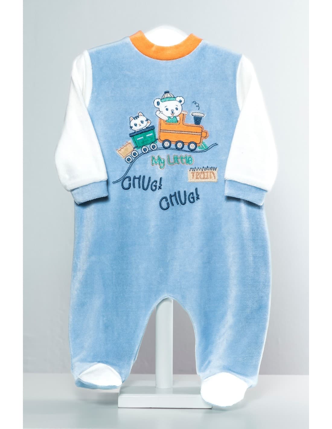 Pelele bebé niño tundosado trenecito Kinanit 521100007 Suave, calentito y divertido