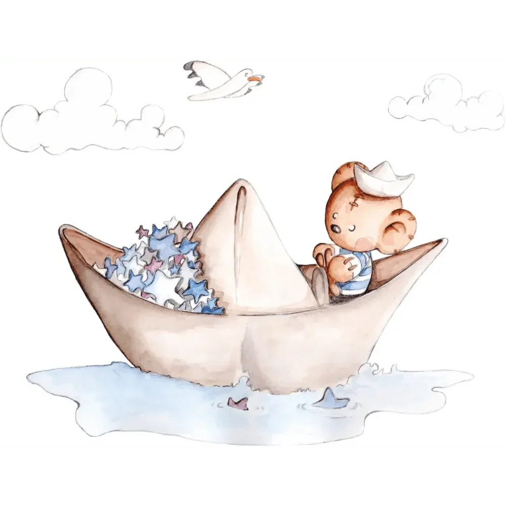 Vinilo Decorativo Infantil BARQUITO DE PAPEL - SUEÑOS DE CIGUEÑA