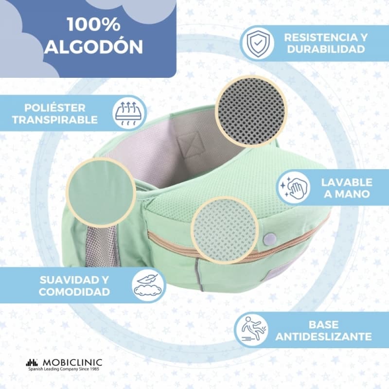 Mochila Portabebés verde Moley 6 en 1 Ergonómica y Transpirable 0-36 meses Mobiclinic MIF-00002/01-VD