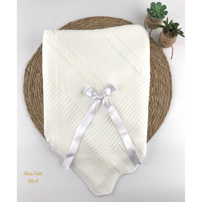 Xaile de lã para bebé com acabamento em viseira e laço (modelo 3364) Alma Petit Crudo